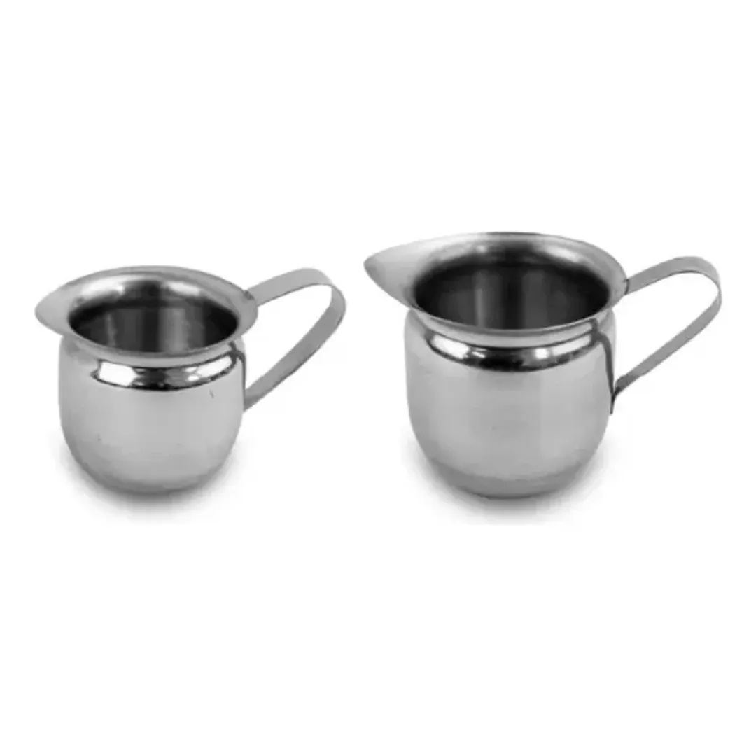 Dale un toque profesional y atractivo a tu cafetería con estas dos jarras de acero inoxidable.
