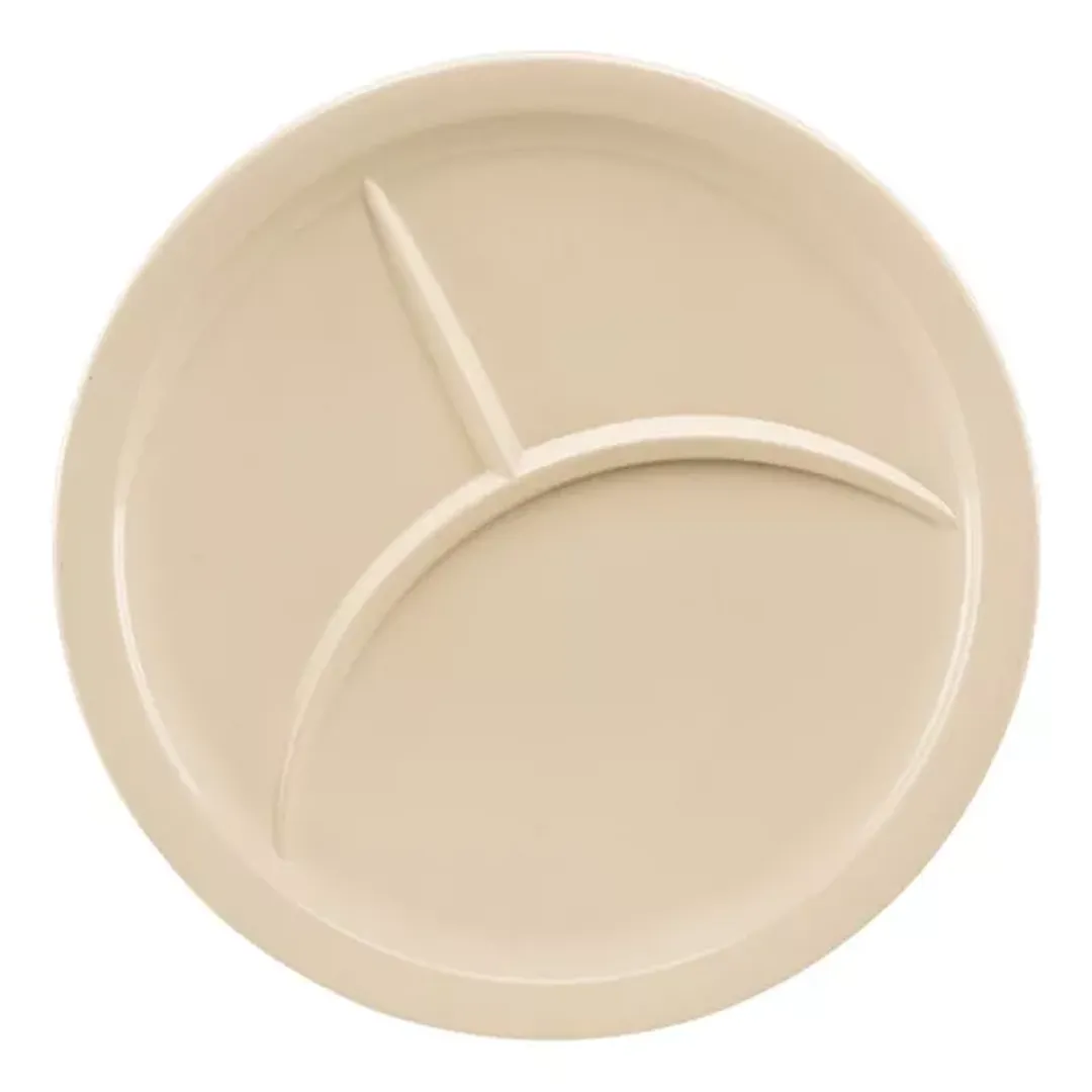 Su diseño con tres divisiones permite servir diferentes alimentos sin mezclarlos, manteniendo la presentación impecable.