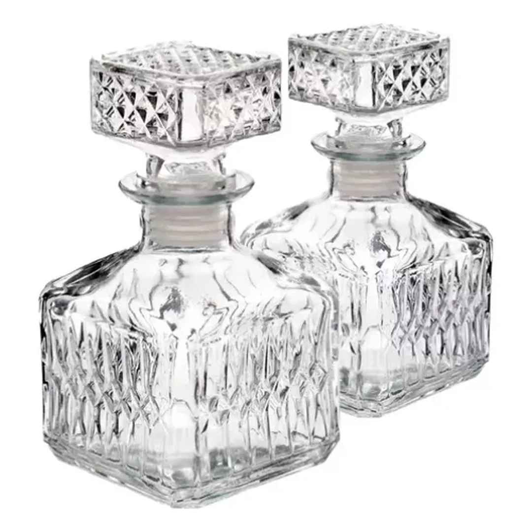 Descubre la elegancia y funcionalidad de las Licoreras Mini de 250 ml en vidrio cuadradas, un set de 70 piezas perfectas para servir tus licores favoritos con estilo.