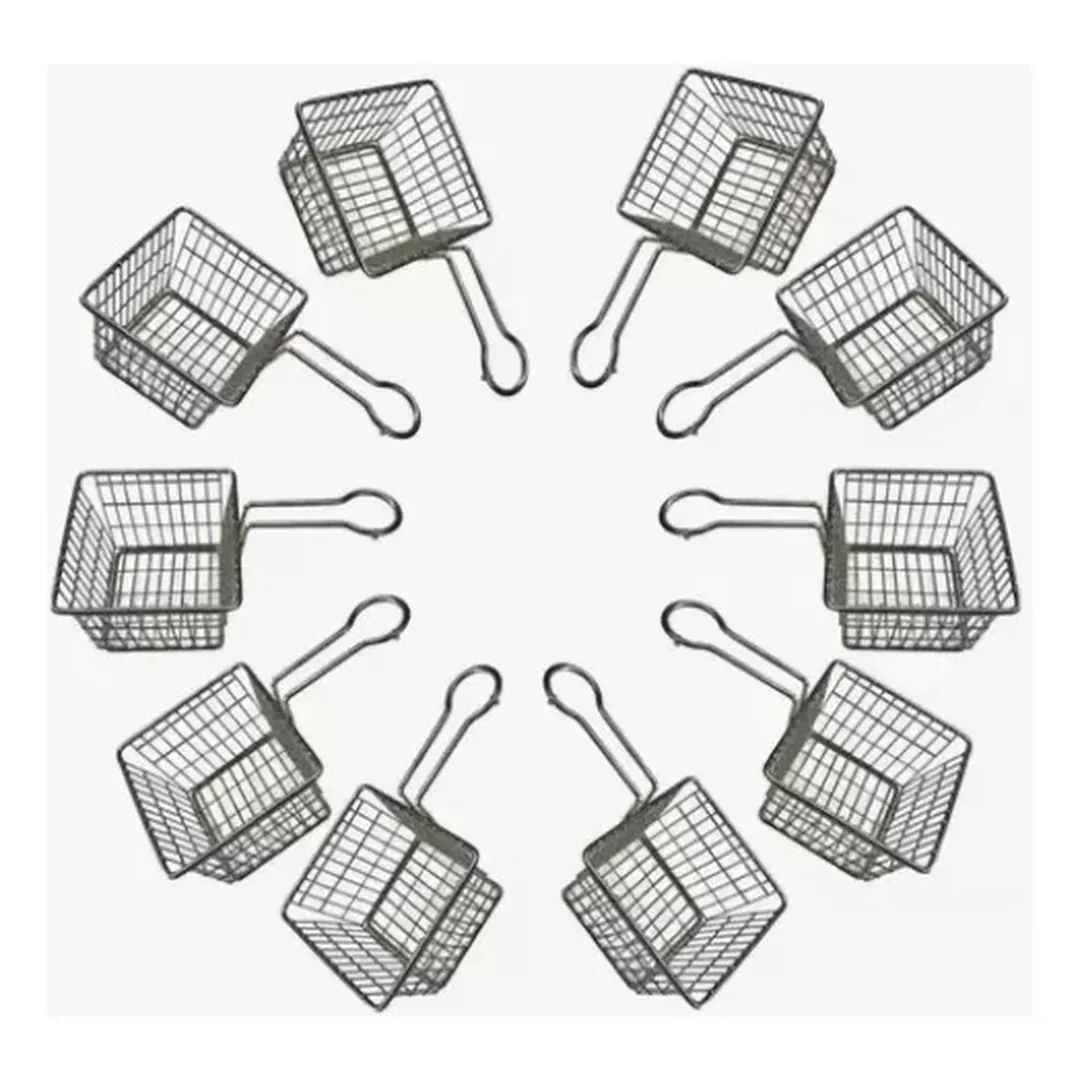 Fabricadas en acero niquelado, estas canastillas cuentan con un diseño cuadrado de 10×10 cm y una altura de 7 cm, ideales para freír porciones individuales de papas.