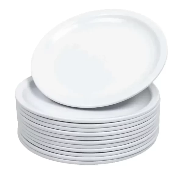 Renueva tu vajilla con este pack de 300 platos de melamina blanca de 23 cm, ideal para escuelas y restaurantes.