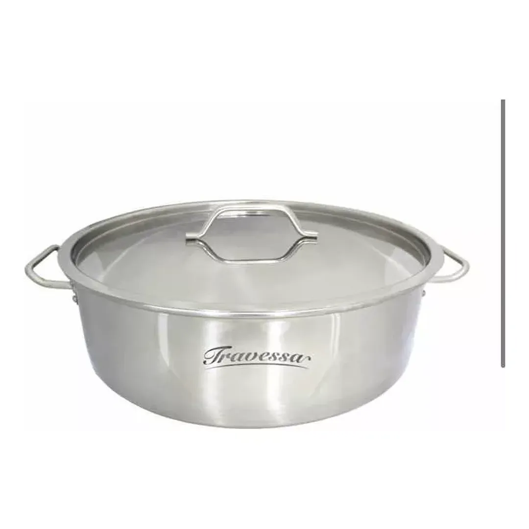 Con una capacidad de 57 litros y dimensiones de 60 cm de ancho, 20 cm de alto y 60 cm de diámetro, esta olla de acero inoxidable es ideal para preparar grandes cantidades de alimentos.