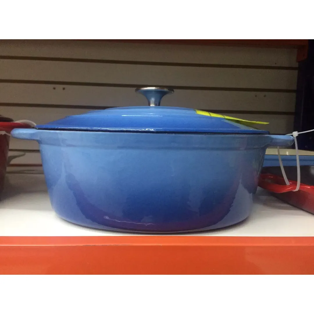 Esta cacerola ovalada de 30 cm de hierro fundido en color azul es la adición perfecta para tu cocina.
