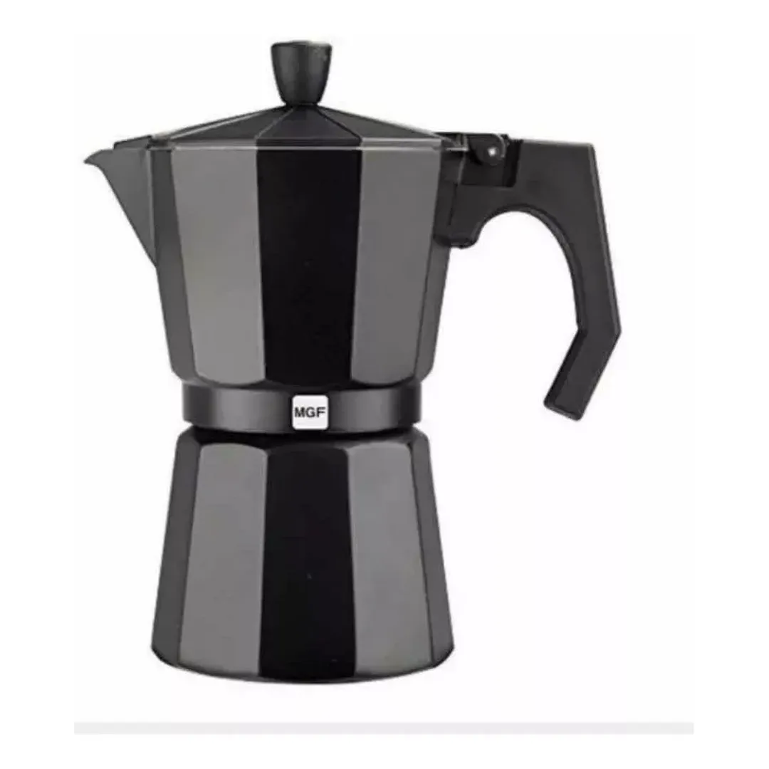 Disfruta de un café aromático y delicioso con la Cafetera Prensa Italiana Café Turco de 9 Tazas en elegante diseño negro.