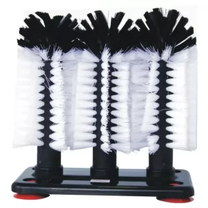 Descubre el Cepillo Triple Para Vasos Bar de Elementos Kitchen, diseñado con cerdas de plástico para una limpieza eficiente y rápida de vasos en entornos de bar.