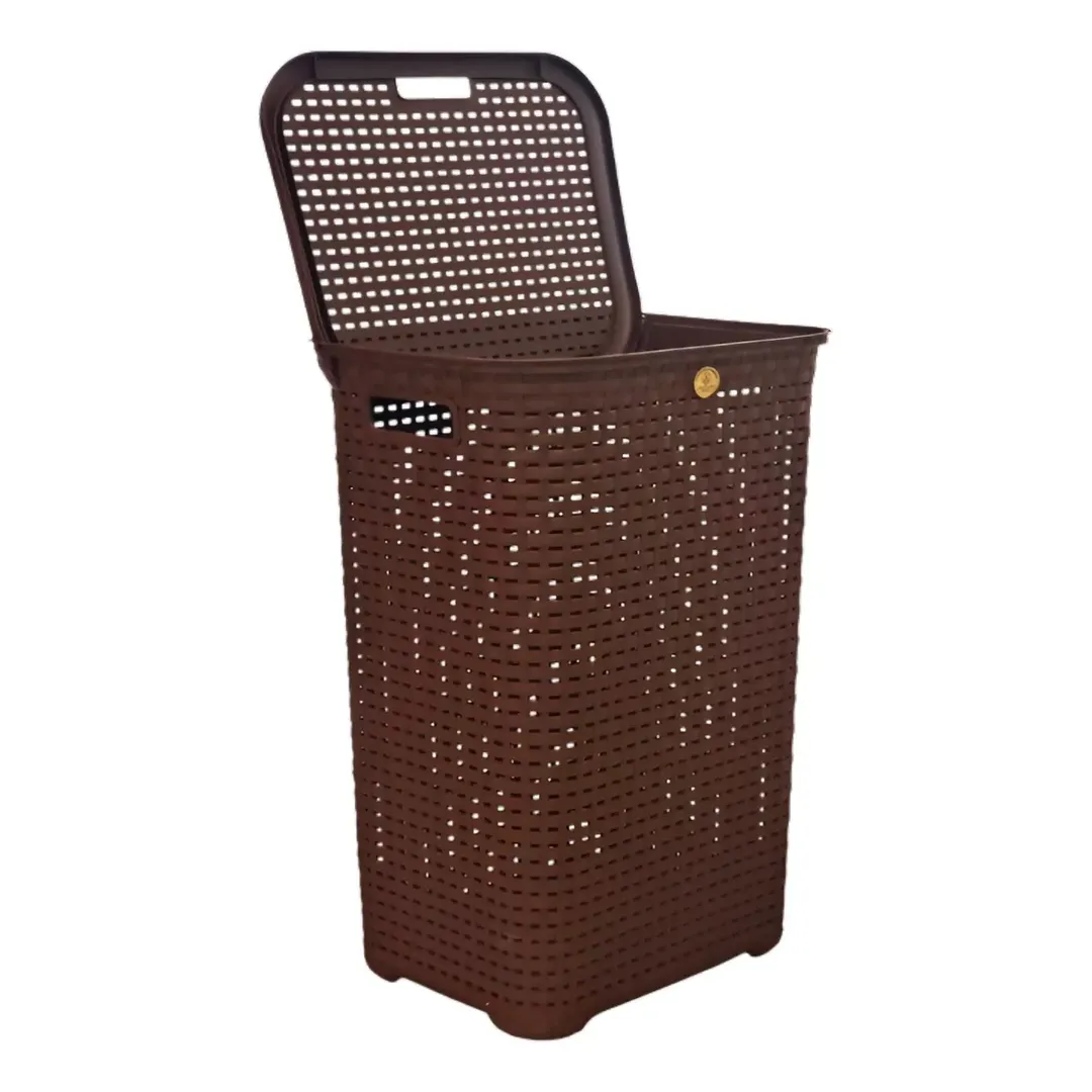 Este Cesto Para Ropa Sucia de Plástico Tipo Rattan es la solución perfecta para mantener tu hogar organizado con estilo.