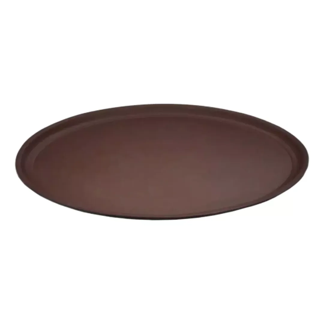 Esta elegante Charola Mesero Ovalada de 56×68.5cm en fibra de vidrio negra es perfecta para servir con estilo en cualquier evento.
