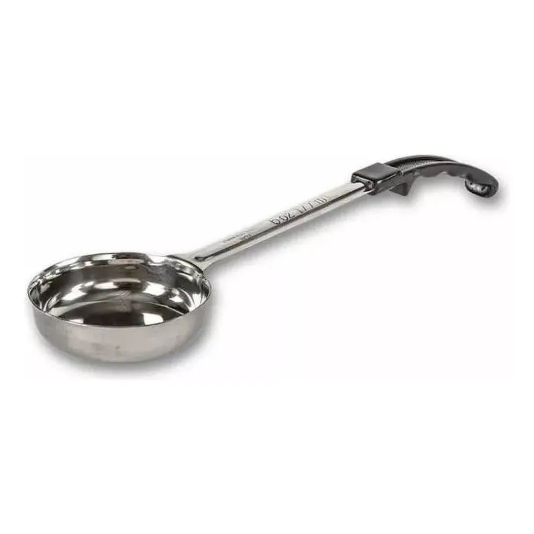 El Cucharón Profesional Proporcionador Plano de 6 oz en color negro es la herramienta perfecta para medir y servir porciones con exactitud en la cocina.