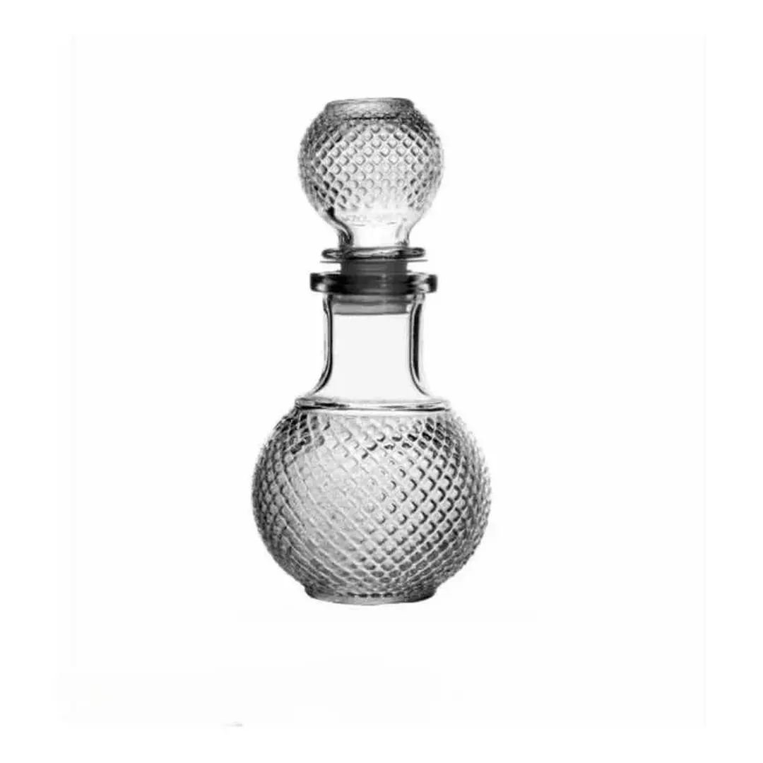 Este sofisticado recipiente redondo está fabricado en vidrio de alta calidad y tiene una capacidad de 1 litro, ideal para almacenar tus licores favoritos.