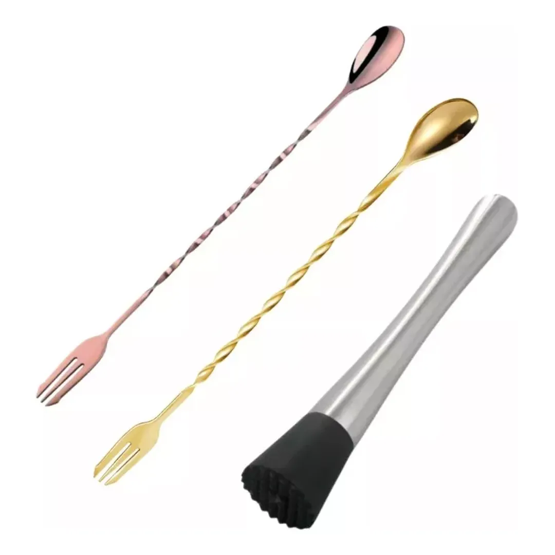 Descubre la versatilidad y calidad del Macerador/Mortero de 21 cm junto con 2 cucharas para bar de 32.5 cm de Elementos Kitchen.