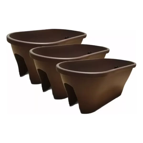 Embellece tu barandal con este juego de 3 macetas jardineras grandes diseñadas para adaptarse a barras de hasta 6 cm de diámetro.