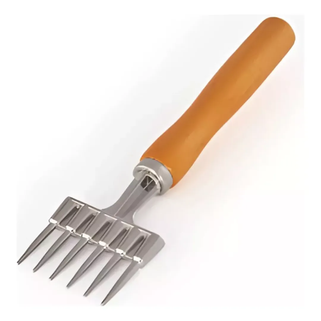 – El mango de madera proporciona un agarre cómodo y seguro, lo que garantiza un uso prolongado sin fatiga en la mano.