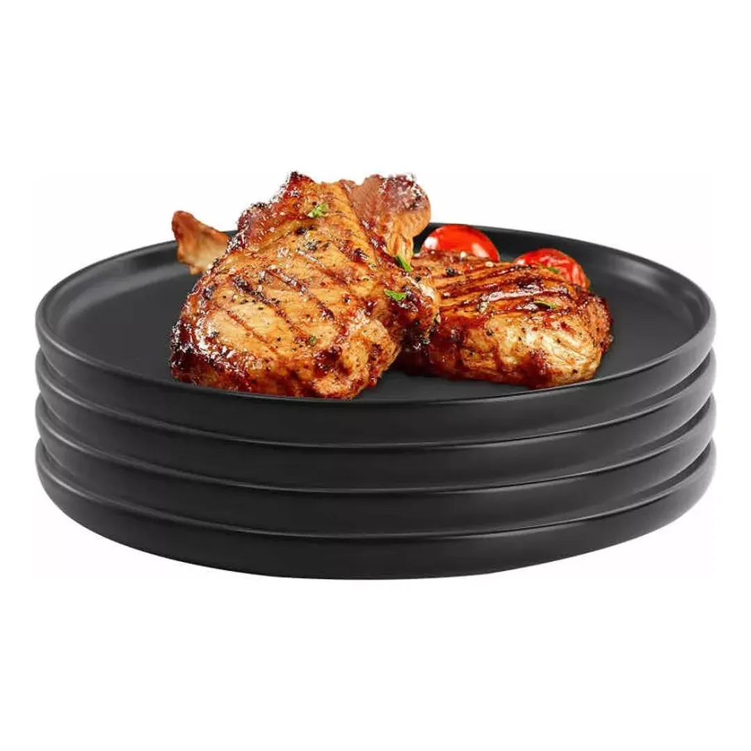 Añade un toque de sofisticación a tus comidas con este set de platos de porcelana negra que combinan estilo y practicidad.