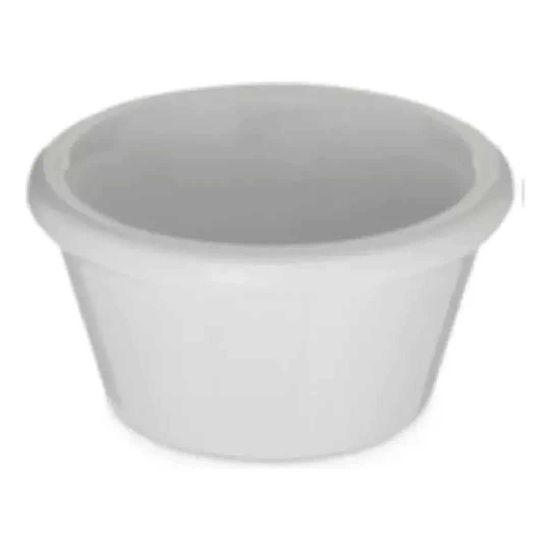 Eleva la presentación de tus platillos con el Ramekin de 2 oz en melamina, ideal para servir salsas, postres y más con estilo y elegancia.