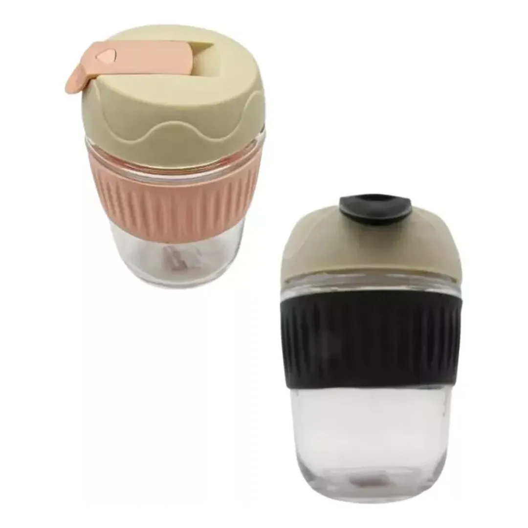 Disfruta de tu café con estilo con este Pack de 5 Vasos de Vidrio con Manga de Silicona y Tapa de Elementos Kitchen.