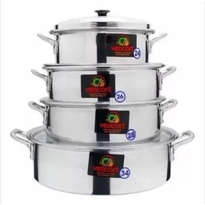 Juegos de ollas, sartenes, cacerolas y tapas en acero inoxidable, aluminio y recubrimientos antiadherentes. Baterías completas para cocina doméstica o profesional.