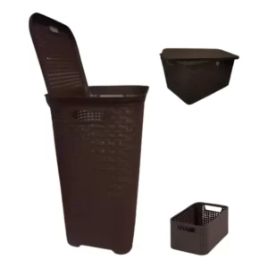 Canastas decorativas de mimbre, ratán, tela y plástico. Soluciones para almacenaje y decoración de interiores y exteriores.