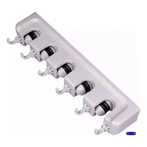 Organizadores de escobas, trapeadores y herramientas de limpieza. Racks de pared en acero, plástico y materiales combinados.