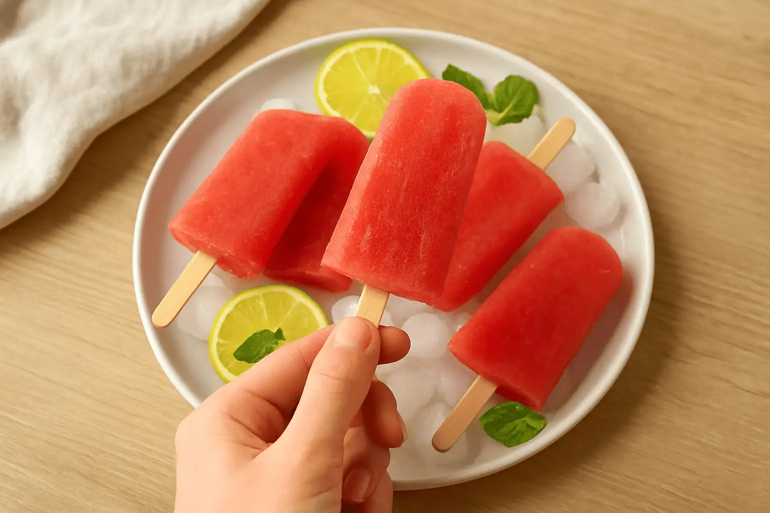 Refrescantes paletas caseras de sandía con limón y hierbabuena, fáciles y perfectas para días calurosos